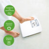 .Diseño moderno de cristal: La plataforma de pesaje tiene una gran superficie de pesaje de vidrio curvada que está suavemente texturizada para evitar resbalones mientras pesas. La simple balanza digital blanca tiene un diseño moderno para que coincida con la decoración de tu baño.