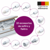 .MANOS Y PIES BIEN CUIDADOS: Se incluye 10 accesorios de alta calidad hechos de zafiro y fieltro para el cuidado de las uñas y la piel de manos y pies para resultados como en un salón de belleza