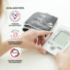 .Tensiómetro de brazo validado clínicamente con indicador OMS: clasifica los valores de la medición de la presión arterial en función de las tablas de la Organización Mundial de la Salud.